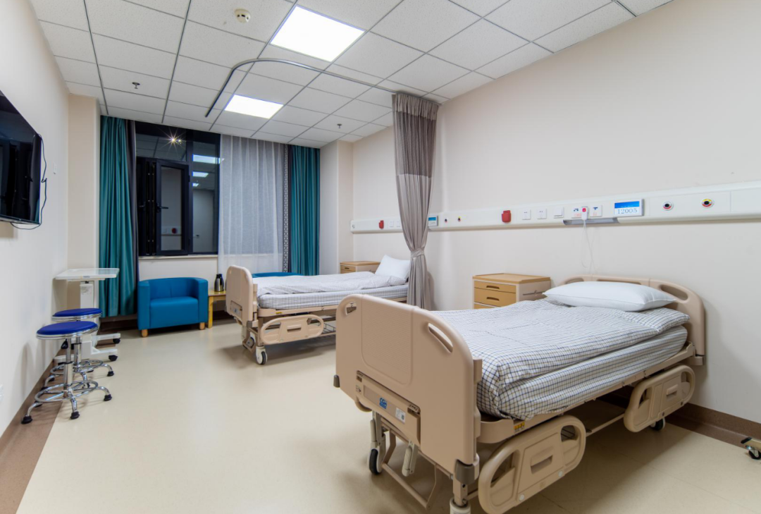 住院樓走廊采用礦棉吸音板吊頂,防火吸音性能好,同時,該產品具有不燃性能,提高了醫院的防火安全性。地面采用PVC地板膠,防滑耐磨、吸音減震,是建設現代化醫院的環保用材。