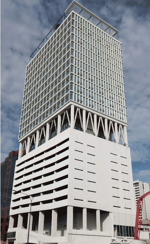 項目位于巴布亞新幾內(nèi)亞首都莫爾茲比港TOWN區(qū)CBD核心地段,總占地面積1808平方米,規(guī)劃總建筑面積2.9萬平方米,是“南太平洋第一高樓”。博大施工范圍包括但不限于幕墻工程、遮陽板系統(tǒng)、幕墻本身的防雷接地裝置、幕墻龍骨、幕墻封邊封頂?shù)取?